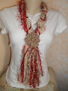 Mais um cachecol de fios, esse coloquei o vermelho queimado com tons bege.